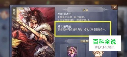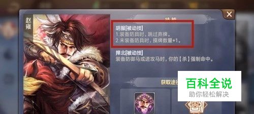 在来了解一下赵雍的被动技能,当他装上防具时可以不用弃牌,没有装防具时,可以多摸一张牌,小编觉得要根据场上的变化合理利用这个技能。