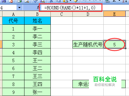 生产随机代号,这里用到公式“=round(rand()*11+1,0)”生成1到12之间的随机数,用round函数保留0位小数。