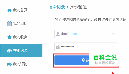 为保证账户安全,需要输入您的密码才可以查看,密码输入无误点击登录就可以查看您的搜索记录。