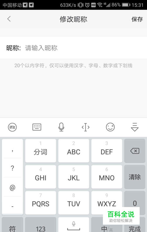 下面,大家输入自己的昵称就行了,之后点击上方的保存。