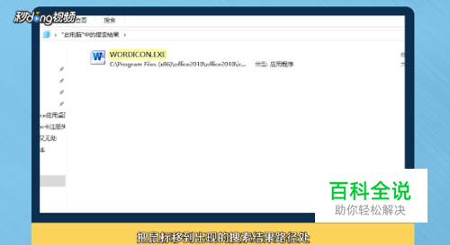 把鼠标移到出现的搜索结果路径处,就会自动出现该文件的具体路径,记住这个安装路径。