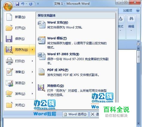 打开Word2007文档窗口,依次单击Office按钮→“另存为”按钮。