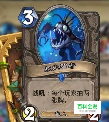 寒光智者,分类为鱼人,爆牌卡组的核心卡。效果是战吼每位玩家抽两张牌。