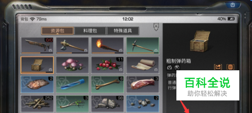 装备后打开右侧武器栏,点击粗制弹药箱。
