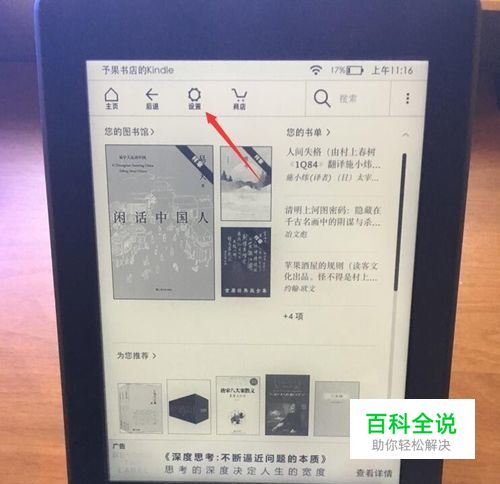 首先,我们点击打开kindle,然后点击页面上方的设置图标,如图所示
