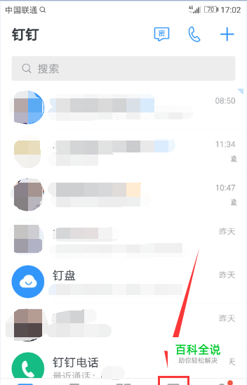 打开钉钉,进入首页后,点击下方的【通讯录】。