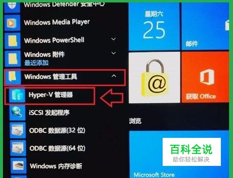 随后在 开始 中找到 [Windows 管理工具]--[Hyper-V管理器],