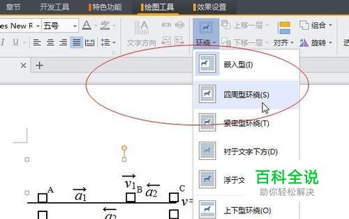 选中需要取消组合的图形,点击“绘图工具”工具栏里面的图片环绕模式, 将环绕模式改为“四周型环绕”。