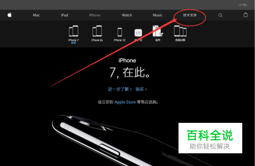 进入苹果官网后,点击进入网页右上方的“技术支持”栏目,如下图