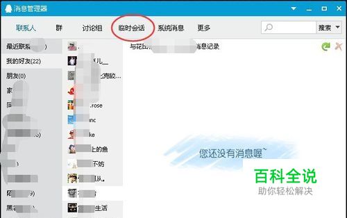 为了更快更直接的 找到 我们与陌生人的聊天记录,这里可以 点击“临时会话”的选项,如下图所示