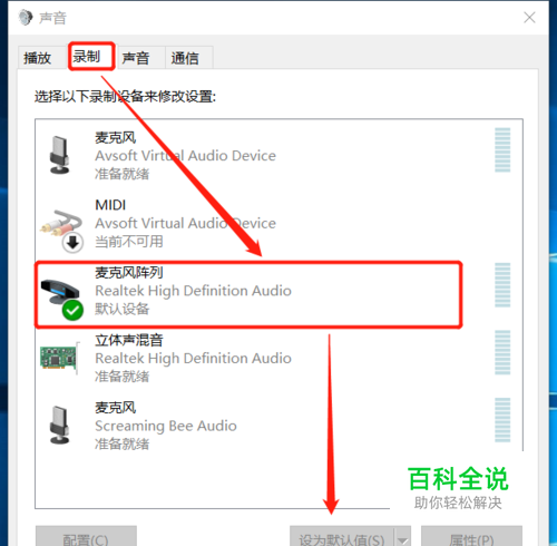 变声类型配置完成后,再打开声音菜单栏里的【录制】,将输入设备设置为Avsoft Virtual Audio Device,确保变声顺利进行。