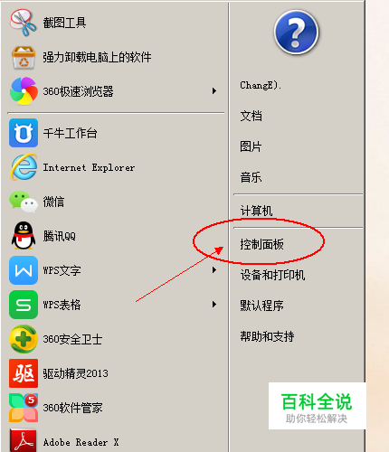首先在电脑的左下角,打开 开始,找到 控制面板