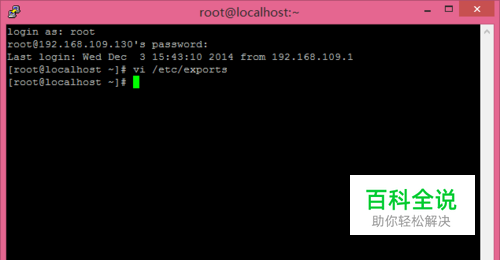 设置 NFS 要共享的目录,在命令行输入 vi /etc/exports 后回车