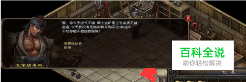 一、老板的提示挖矿是赚钱的一个很重要的手段,挖矿次数多了,总会有运气挖到纯度高的金矿,当你从矿洞满载而归,背包里面有一块纯度15的金矿,比奇卫家店老板会说:你背包里面金光闪闪的是什么,啊,是金矿,恩,你可以再找几块吗,我会给你一个好的价钱,这时候的你如果比较细心,就会感觉这是一个很重要的信息,等到积攒到3块纯度15(或以上纯度)的金矿,再来找比奇卫家店老板,他就会告诉你,金矿他都要了,给你三个选择,当然,乐于助人的你选择了免费赠给你,这时你会发现你包袱里的金矿不见了,然后他就会让你去找门外的铁匠铺老板。