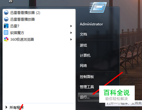 有的人的电脑可能开始菜单面板的右侧没有“运行”按钮。由于篇幅限制,我就没法给大家介绍怎么让它显示出来了。提供另外一种方法,也就是点击“开始”菜单,把光标定位到“搜索程序和文件”。