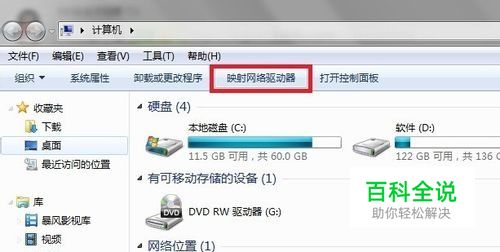 用鼠标点击窗口中的“映射网络络驱动器”