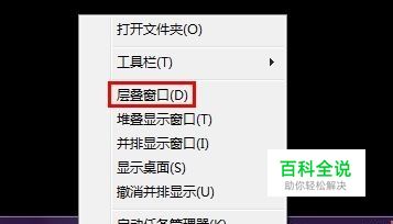 上面是一种3D的方式,但是还有一些方式虽然不是很漂亮,但是同样非常实用。我分别来说明一下。右键点击任务栏空白处, 会出现一个层叠窗口的选项,点击一下此选项,我们可以看到所有打开的窗口已经排列起来了,层叠排列,我们可以一目了然地看到所有打开的窗口。