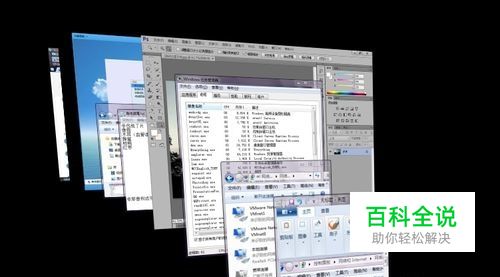 然后我们可以发现在win7系统的桌面上出现了这样漂亮的窗口排列形式,而且如果你一直接住这两个键盘键,就会不停地切换这些窗口,非常漂亮,而且也非常方便。