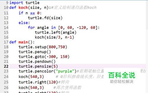 如何使用python的turtle库绘制科赫雪花(递归)