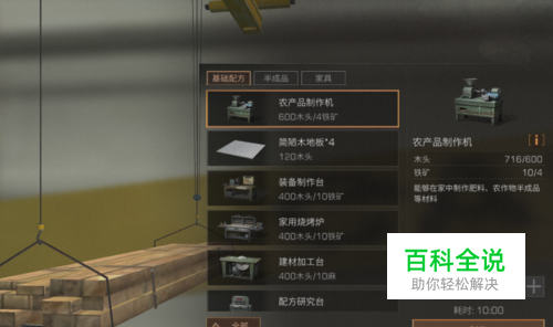接着还需要拥有制作面粉的道具【农产品制作机】,这个道具需要玩家花费木头×600、铁矿×4在营地的家具店制作获得。