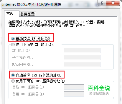 第二步,将这一页的选项改为“自动获得IP地址”和“自动获得DNS服务器地址”。点击两次“确定”退出。(如图2)