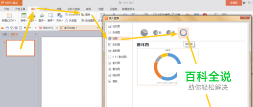 插入抽奖转盘。 幸运大转盘,可以利用PPT图表功能制作,也可以直接插入图片。 此处,使用图表功能制作。