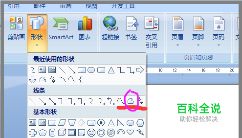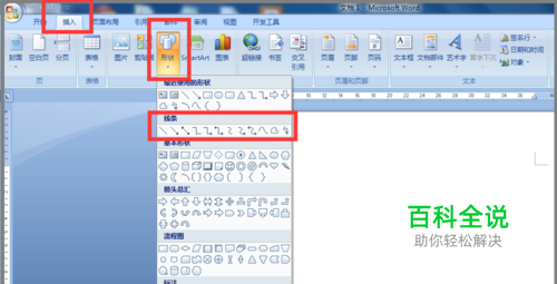 第一步:先以word 2007版软件为例,如下图,找到几何图形工具栏。 这里通过用几何工具教大家画一个自定义图形——树。 说明:word 2003版、word 2003版都有此功能。