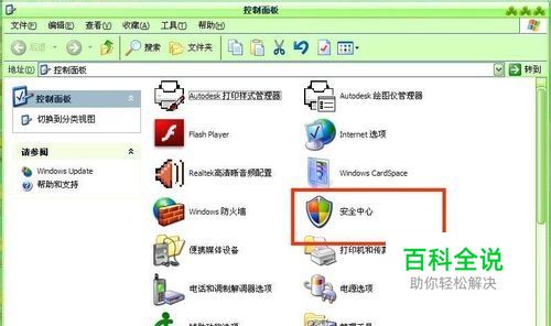 点击控制面板以后会出现控制面板窗口,在控制面板窗口里面点击安全中心