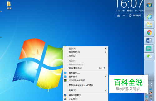 右键桌面在呼出的菜单栏里点击“屏幕分辨率”