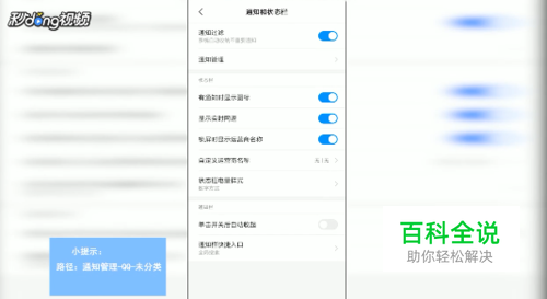 点击通知管理,寻找QQ,点击未分类,打开锁屏通知。