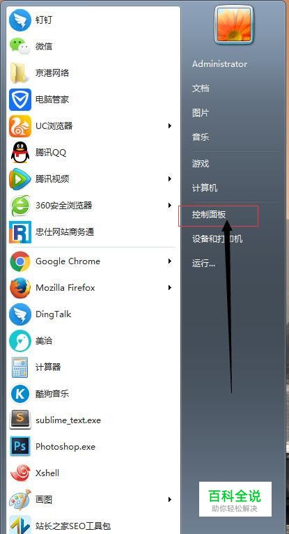 我们打开电脑,进入我们的电脑桌面,点击开始的菜单栏目,看到有一个控制面板,点击进去。