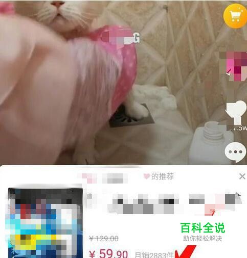 因为是手机视频截屏,清晰度望海涵,在视频的视频发布者的头像上方会有一个,黄色的小购车图标,点击【黄色小购物车】。