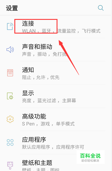 进入设置,我们选择连接进入,如下图所示