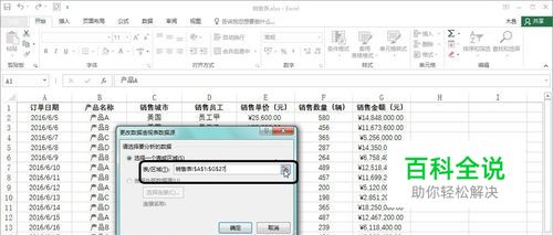 步骤三:选择新的数据源 在“销售表”数据源工作表中选择新的数据源,然后单击单元格引用按钮,如下图所示。