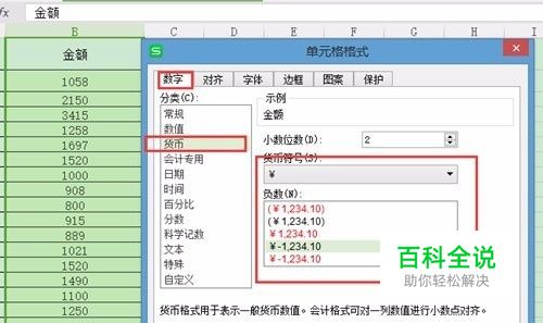 设置好货币样式的单元格格式之后的效果图如下: