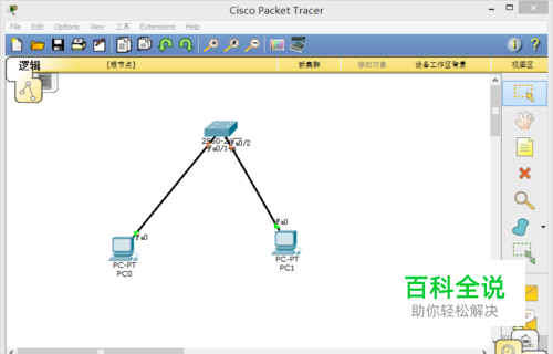 首先呢,下载并打开思科模拟器软件,在思科模拟器上找到Cisco 2960交换机一台,PC 2台,直通线若干条,进行连接配置。