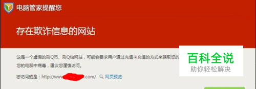 360安全卫士解除拦截网站方法;打开**网站之后,跳转到了360安全卫士的拦截页面。