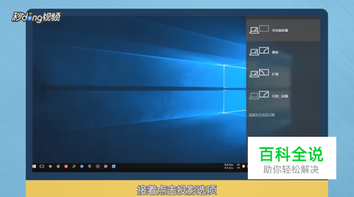 需连接投影仪到电脑,将鼠标滑动到桌面右下角,点击“投影”选项。