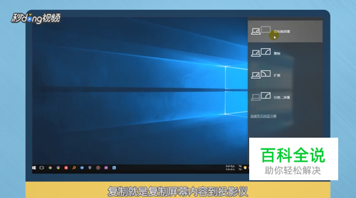 弹出的选项分别为“复制扩展”和“仅第二屏幕”,复制就是复制屏幕内容到投影仪。