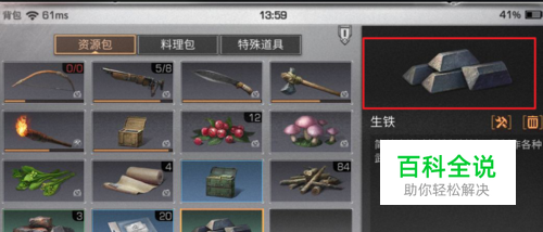 我们点击生铁的选项,如果材料收集充足,就可以点击下方的制作选项。如果没有收集够,可以去地图中收集。
