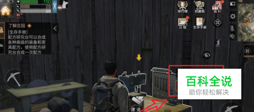 我们打开明日之后手游进入主界面后,在自己建造的房屋里,找到摆设的装备制作台,点击页面的制作选项。
