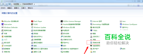 在控制面板界面,选择“网络和共享中心”