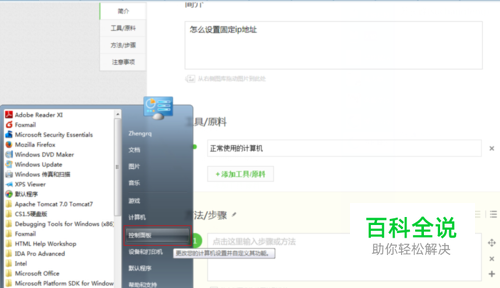 在这里,我们以win7计算机为例,点击开始菜单,选择“控制面板”