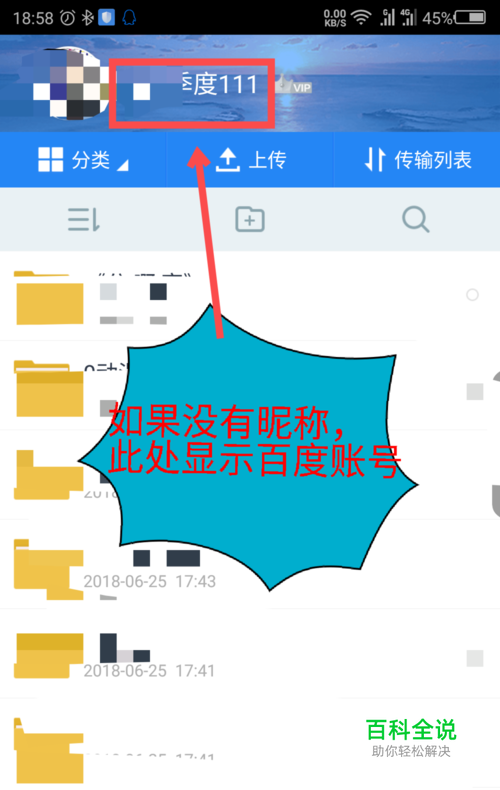 打开手机百度网盘,如果你没有改过昵称,那么网盘上显示的就是你的账号名字。