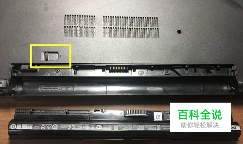 拆电池。图中黄色框内是电池锁扣,向右滑动,即可解锁电池。