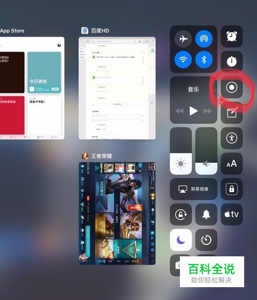 我们双击home键,进入后台模式,然后点开红圈的那个图标。如下图。点了之后三秒钟后就会录屏。