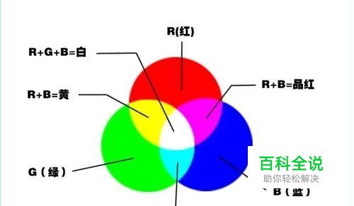 R(红色)+G(绿色)=黄色(R=255、G=255、B=0) R(红色)+B(蓝色)=洋红或品红色(R=255、G=0、B=255) G(绿色) +B(蓝色)=青色(R=0、G=255、B=255) 黄色、品红色、青色和白色四种颜色都为具有100%纯度的混合色彩,比CMYK色彩模式更为鲜艳。 如图所示