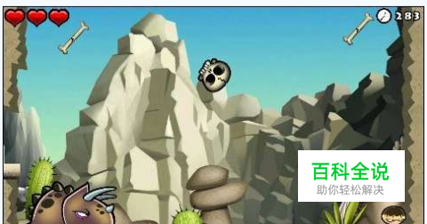 【《削削野蛮人》第二关boss】:WADE 【通关条件】 利用屏幕上方掉落的骷髅头,捡起并扔向三角龙。