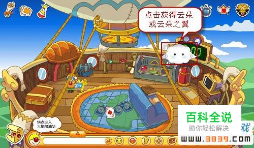 进入土豆号之后,可以看到天空中飞行的白云,点击可以获得云朵和云朵之翼。