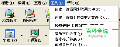 “工具”菜单下有:“创建、编辑同步歌词文件”的命令: